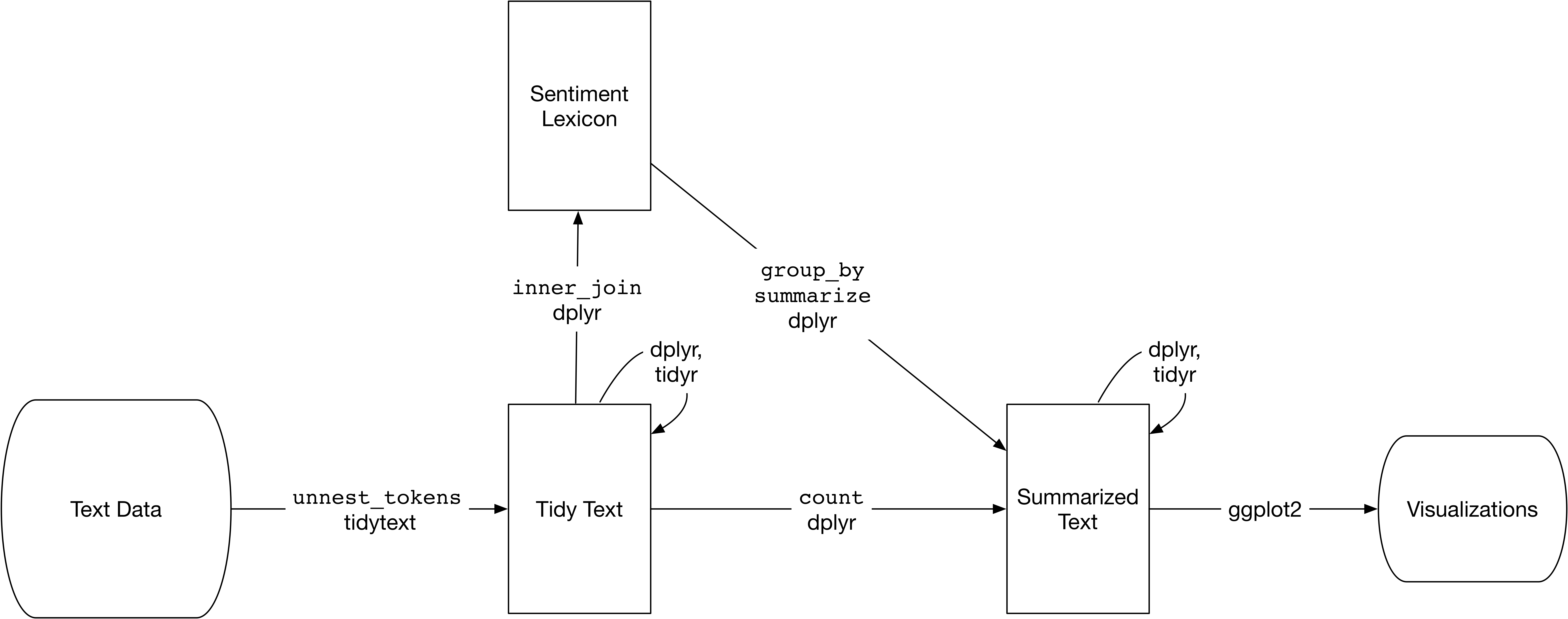 In our book the process for Sentiment Analysis is to join a sentiment dataset and do dictionary look ups.